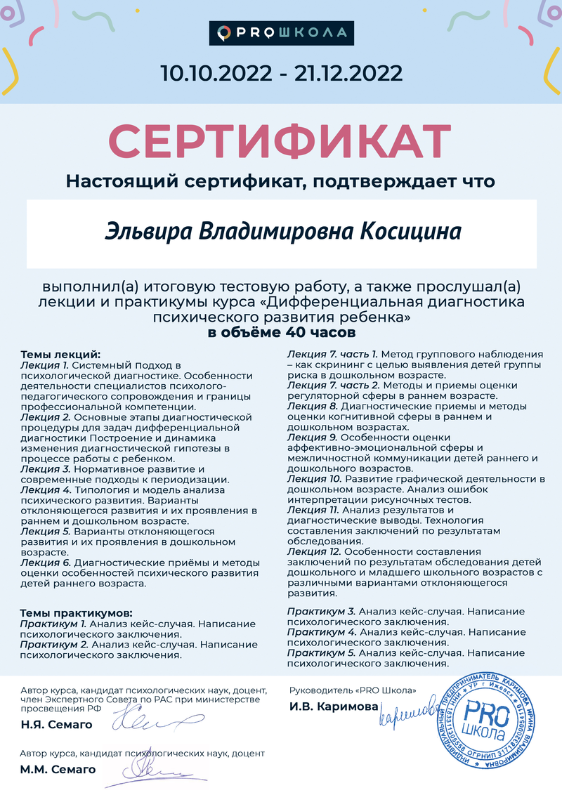 · 21.12.2022 год — Курс «Дифференциальная диагностика психического развития ребёнка».